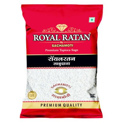 Premium export quality sago under ROYALRATAN trademark is available as under: Consumer Packs : 1Kg, 500 gms and 200gms Master pack : 25 Kgs in H.D.P.E Bags Loose Pack : 30kgs and 10kg H.D.P.E Shelf life of 1 year.